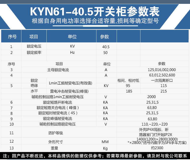 KYN61-40.5型鎧裝移開(kāi)式交流金屬封閉開(kāi)關(guān)柜系三相 交流50Hz,額定電壓40.5kV的戶(hù)內(nèi)成套配電裝置。作為發(fā)電廠、變電站及工礦企