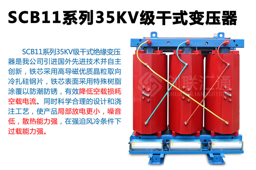 SC(B)11系列35KV環(huán)氧樹(shù)脂干式變壓器新一代節(jié)能產(chǎn)品,該系列配電變壓器產(chǎn)品使用在變壓器電壓直接從35KV電網(wǎng)轉(zhuǎn)變?yōu)?00V配電的特殊場(chǎng)合,可減少10KV輸變電環(huán)節(jié),使運(yùn)行維護(hù)費(fèi)用明顯降低。35KV級(jí)無(wú)勵(lì)磁調(diào)壓配電變壓器產(chǎn)品通過(guò)了家級(jí)鑒定,確立為高新技術(shù)產(chǎn)品。 產(chǎn)品具有損耗低、阻燃性好、承受短路能力強(qiáng)、體積小、噪音低、耐雷電沖擊性能好,溫度分布均勻等優(yōu)點(diǎn),而且由于環(huán)氧樹(shù)脂干式變壓器不使用變壓器油,不會(huì)產(chǎn)生油污染,無(wú)爆炸危險(xiǎn)。產(chǎn)品可作為配電變壓器廣泛適用于電力系統(tǒng)城網(wǎng)改造,也可用于高層建筑、機(jī)場(chǎng)、車站、港口、地鐵待對(duì)消防、環(huán)保有嚴(yán)格、特殊要求的多種場(chǎng)合。