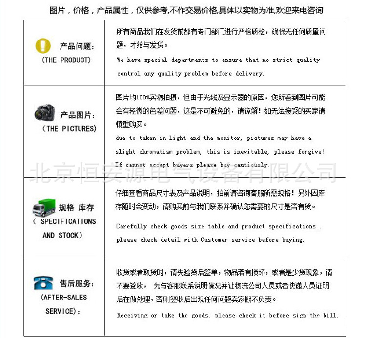 1.我公司對生產(chǎn)的全部產(chǎn)品實(shí)行“三包”,保證產(chǎn)品采用較佳材料和一流工藝,符合合同規(guī)定的質(zhì)量﹑規(guī)定和性能要求。保證其合同設(shè)備經(jīng)過正確安裝﹑合理操作和維護(hù)保養(yǎng),在合同設(shè)備使用期內(nèi)運(yùn)轉(zhuǎn)良好,在規(guī)定的質(zhì)量保證期內(nèi),對由于設(shè)計工藝或材料的缺陷而造成的故障負(fù)責(zé),免費(fèi)負(fù)責(zé)修理或更換有缺陷的電器元件。