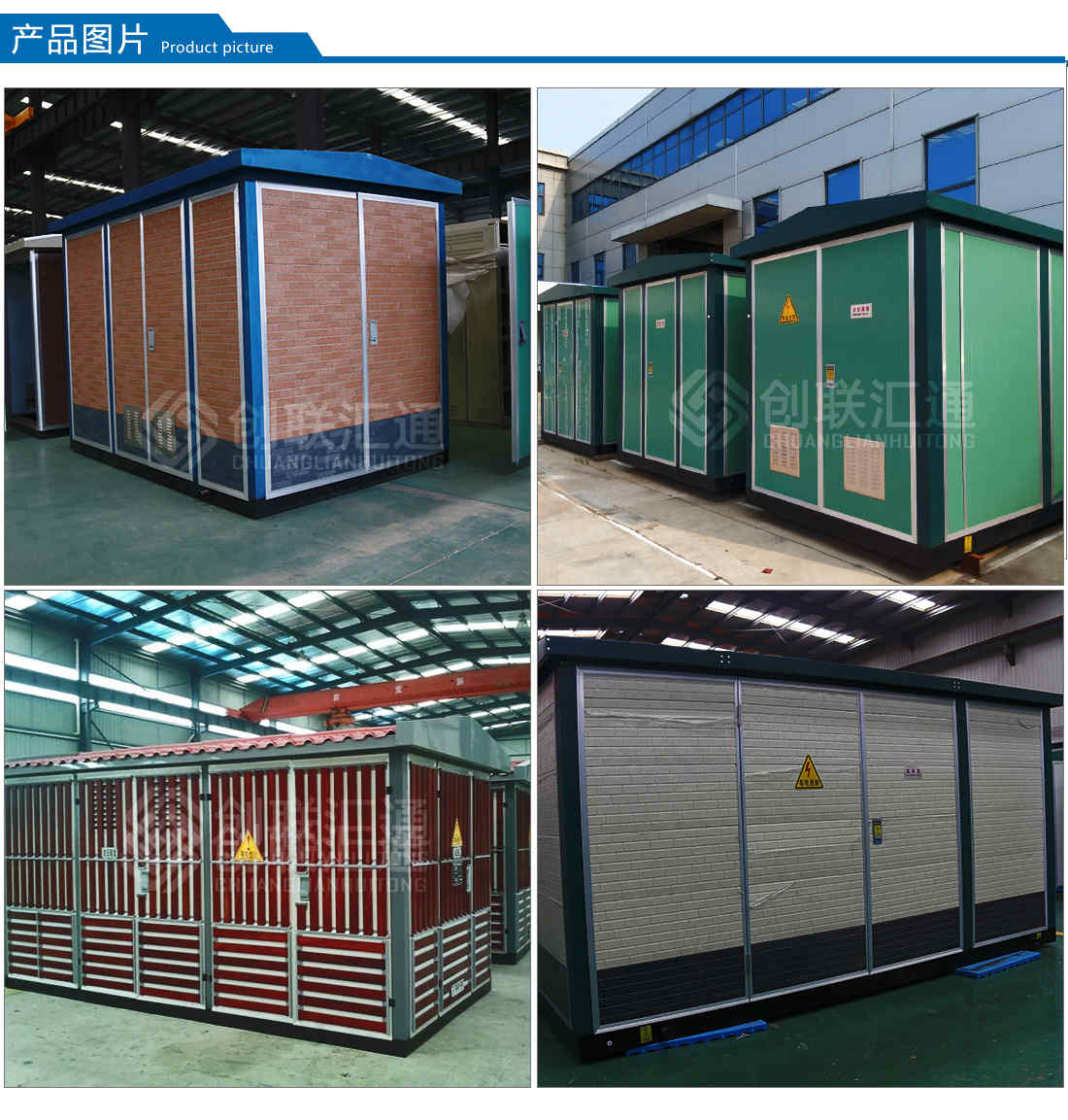箱體部分采用目前內(nèi)領(lǐng)先技術(shù)及工藝,外殼一般采用鍍鋁鋅鋼板,框架采用標(biāo)準(zhǔn)集裝箱材料及制作工藝,有良好的防腐性能,保證20年不銹蝕,內(nèi)封板采用鋁合金扣板,夾層采用防火保溫材料,箱體內(nèi)安裝空調(diào)及除濕裝置,設(shè)備運(yùn)行不受自然氣候環(huán)境及外界污染影響,可保證在-40℃~+40℃的惡劣環(huán)境下正常運(yùn)行。箱體內(nèi)一次設(shè)備采用全封閉高壓開關(guān)柜(如:xgn型)、干式變壓器、干式互感器、真空斷路器,彈簧操作機(jī)構(gòu)、旋轉(zhuǎn)隔離開關(guān)等內(nèi)技術(shù)領(lǐng)先設(shè)備,產(chǎn)品無(wú)裸露帶電部分,為全封閉、全絕緣結(jié)構(gòu),完全能達(dá)到零觸電事故,全站可實(shí)現(xiàn)無(wú)油化運(yùn)行,安全性高,二次采用微機(jī)綜合自動(dòng)化系統(tǒng),可實(shí)現(xiàn)無(wú)人值守。