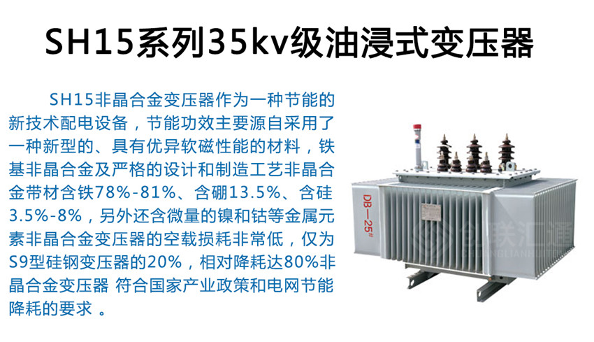SH15非晶合金變壓器作為一種新一代節(jié)能產(chǎn)品,可以普遍適用于住宅小區(qū)、學校、工礦企事業(yè)單位以及社會公共設施??稍趹魞?nèi)(外)使用,容量在315kVA 及以下時可安裝在桿上,海拔高度不超過1000m。