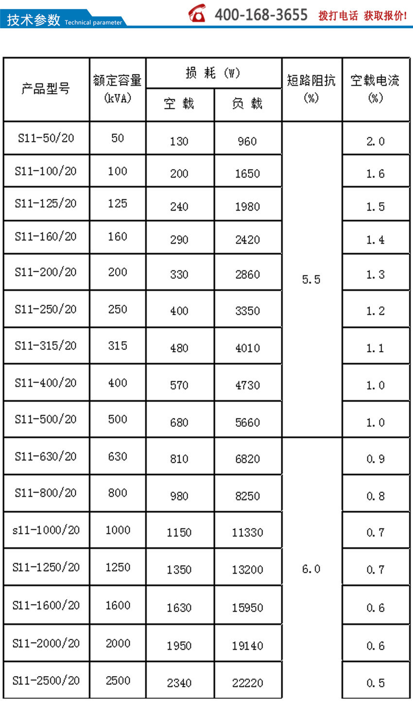 S11系列產(chǎn)品在S9系列的基礎(chǔ)上,空載損耗平均降低了30%;空載電流比S9下降70-85%;平均溫升降低10K,產(chǎn)品使用壽命增加一倍多,即使在超負(fù)載20%的條件下仍可長(zhǎng)期運(yùn)行;產(chǎn)品運(yùn)行噪音平均降低2-4分貝。