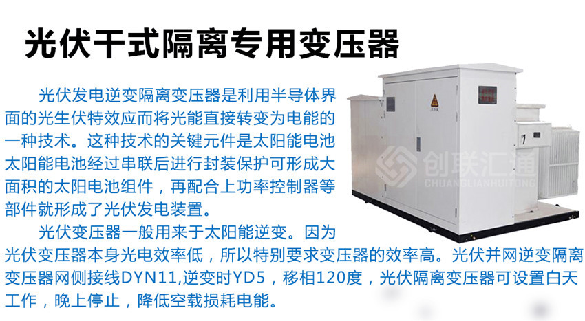 光伏并網(wǎng)逆變隔離變壓器網(wǎng)側(cè)接線dyn11,逆變時(shí)yd5,移相120度,光伏隔離變壓器可設(shè)置白天工作,晚上停止,降低空載損耗電能。
